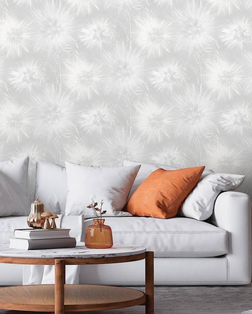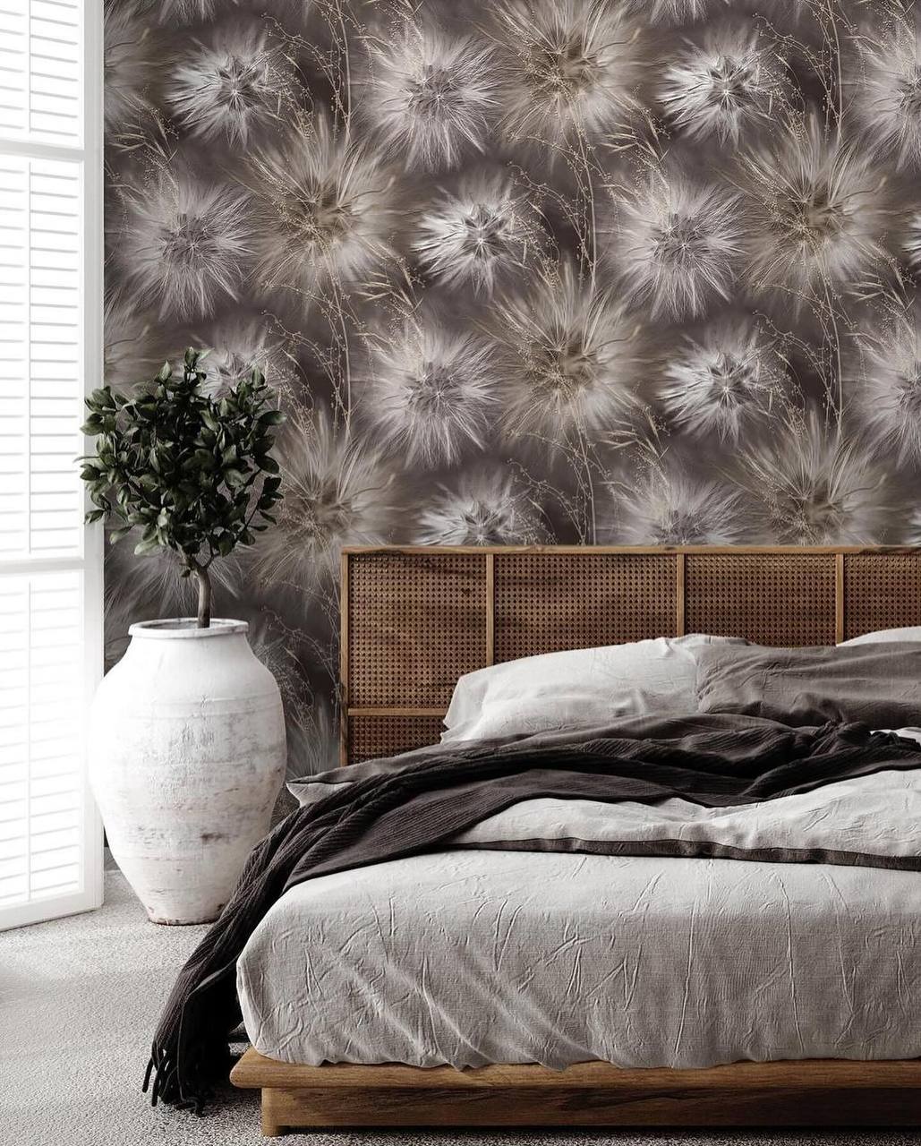 Воздушные одуванчики в новой коллекции от Victoria Stenova — AMAZING. Объемный мотив получается за счет шелкового тиснения и проработки мельчайших деталей, одуванчики смотрятся реалистично и завораживающе. Фон-компаньон очень приятный, сочетает матовое и глянцевое тиснение, отлично стыкуется и выполнен в актуальных интерьерных тонах. Обои словно раздвигают пространство, мы получаем объемное изображение, при этом не перегружая интерьер слишком ярким и навязчивым цветом. Узнать стоимость и приобрести обои вы можете в магазине Мир Обоев ТЦ "Ремолл", ул. Доватора 156