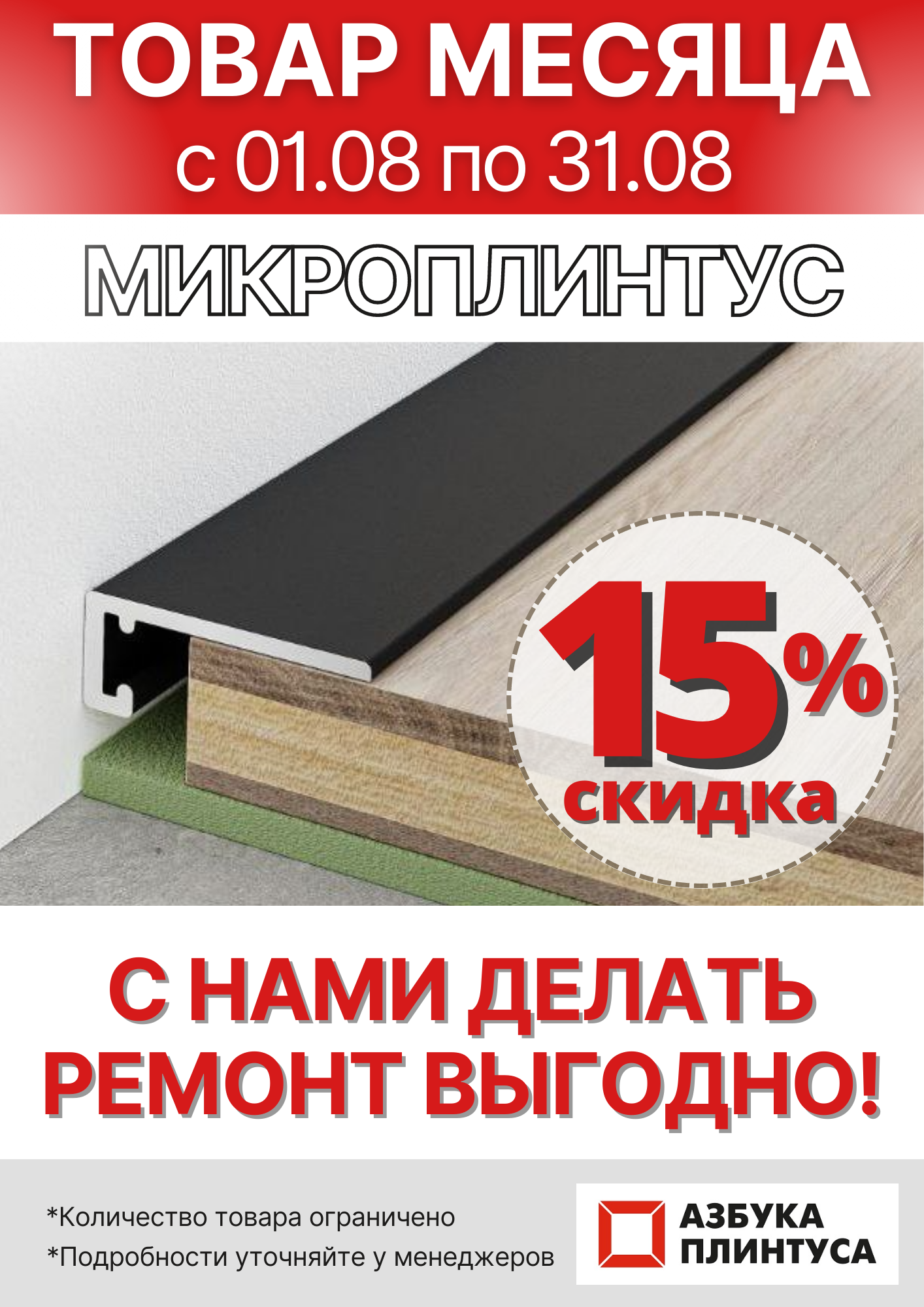 - 15% на весь ассортимент МИКРОПЛИНТУСА
